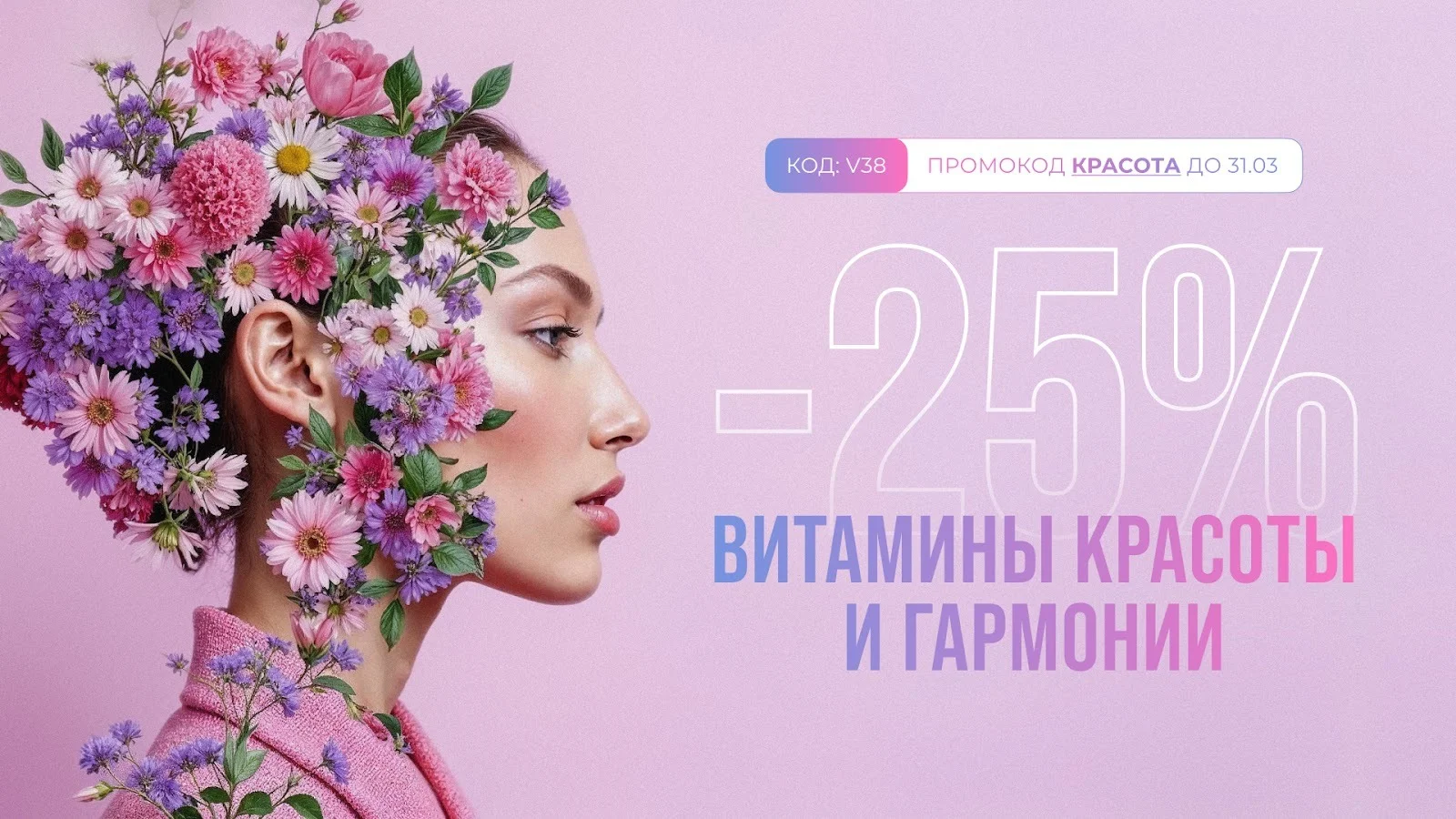 Самое время провести их ревизию: только для новых клиентов до 31 комплекс «Витамины красоты и гармонии» (V38) со скидкой 25% по промокоду КРАСОТА.